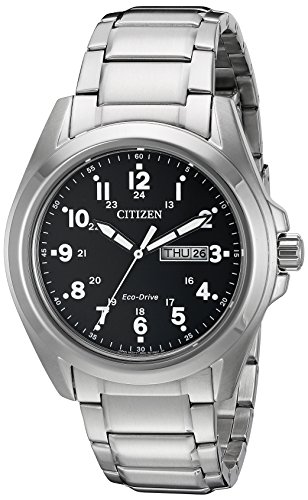 Montre Citizen Eco-Drive Weekender Garrison Field pour homme en acier inoxydable, cadran noir (modèle : AW0050-82E)