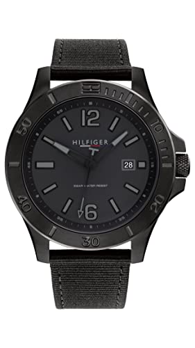 Tommy Hilfiger Montre à quartz pour homme en acier inoxydable et #Tide Ocean en plastique recyclé avec bracelet en nylon, couleur : noir (modèle : 1791993)